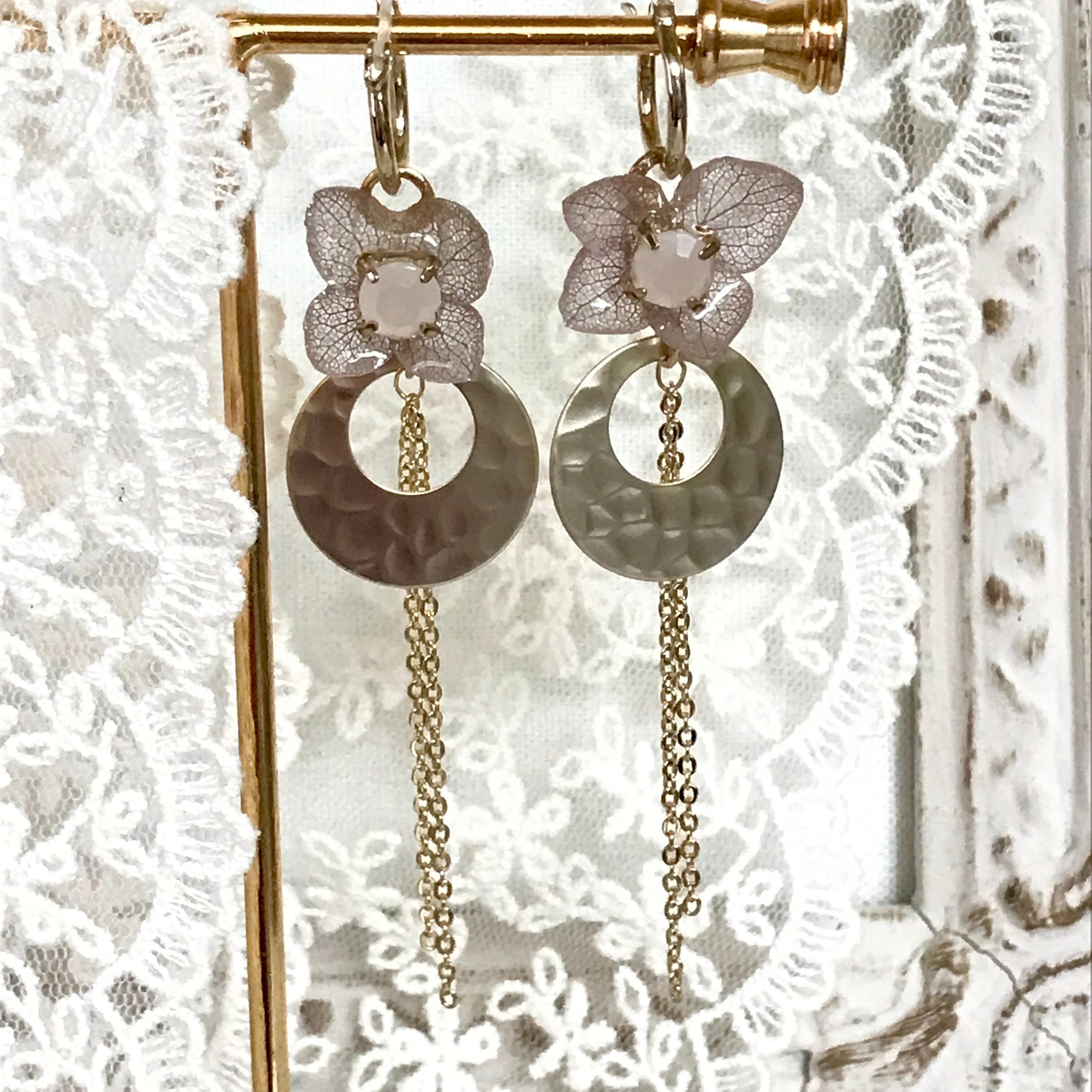 ピンクグレーのアジサイの2Wayピアス