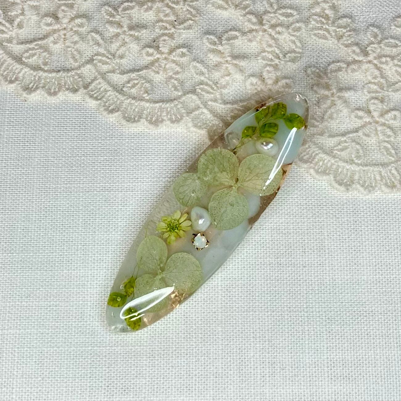 お花をレジンで閉じ込めた、ヘアクリップです。